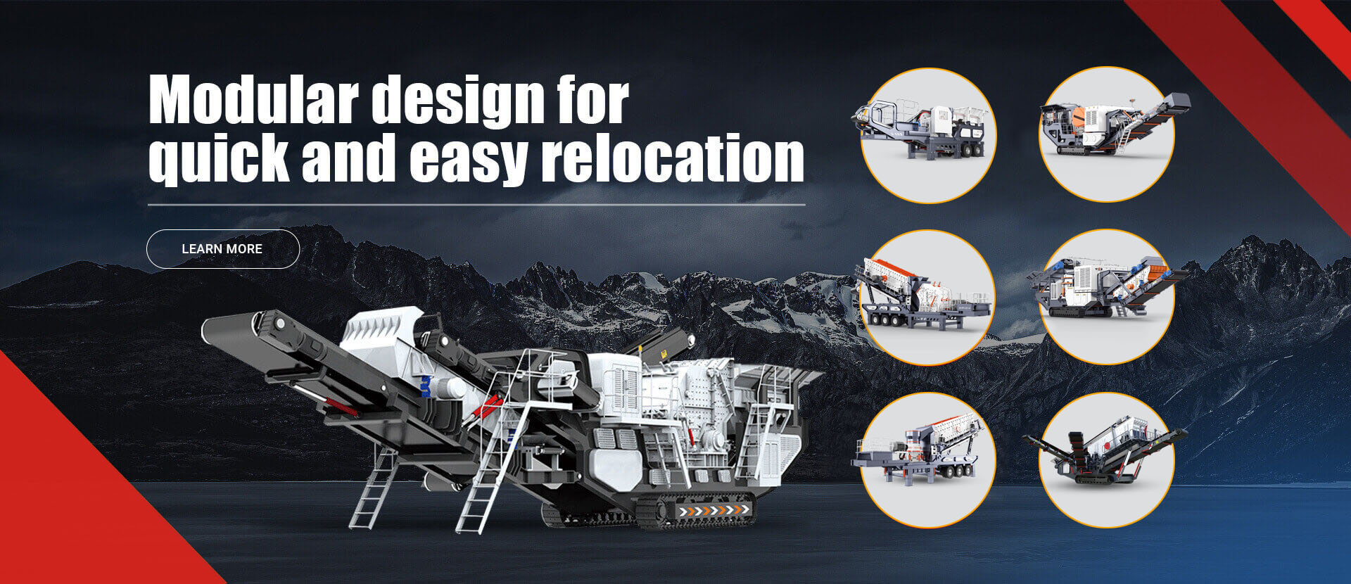 Mobile tire-mounted crushing plant workshop on-site