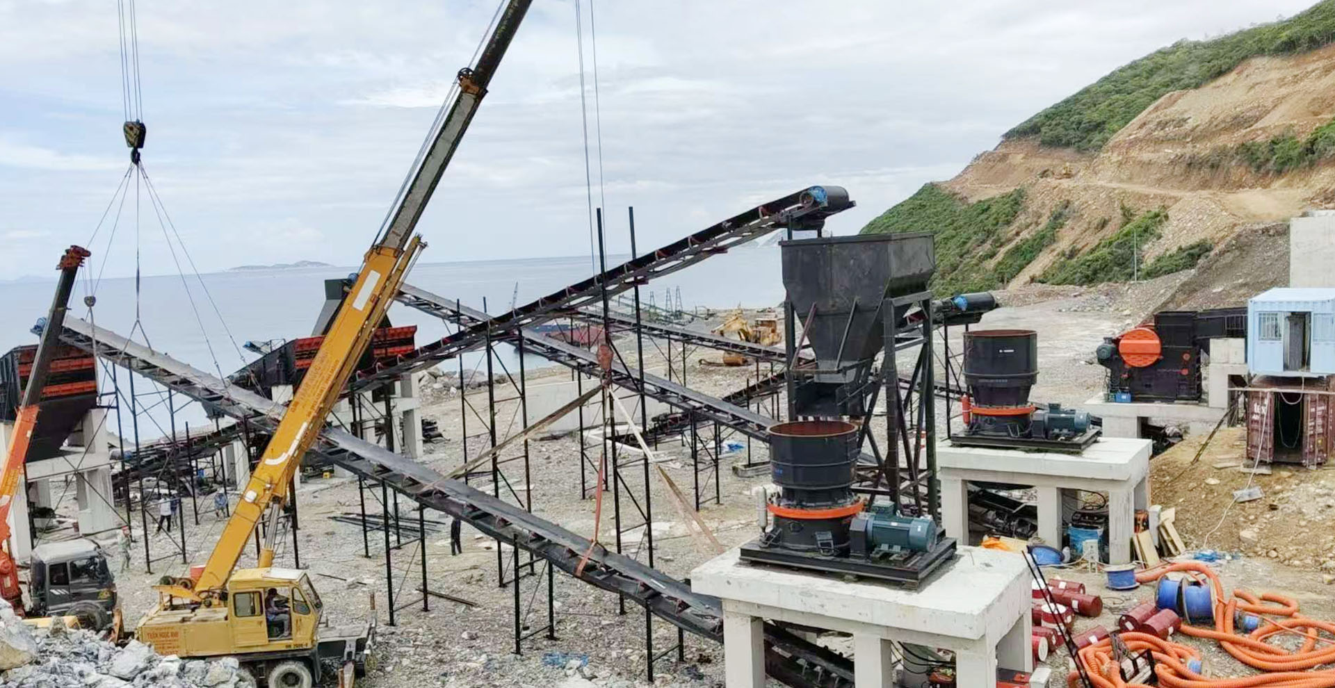Многоцилиндровая конусная дробилка установлена на месте в мастерской.